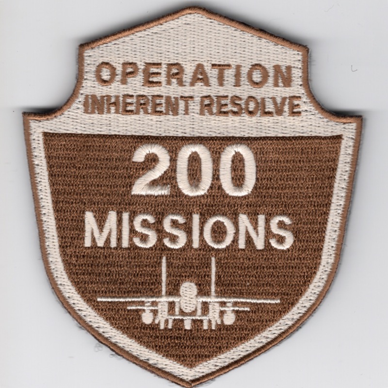 (Another AV8RSTUFF Creation): This is the desert version of the F-15E ‘Operation INHERENT RESOLVE’ shield that is worn by those pilots/WSO’s that flew “200 MISSIONS” in the MudHen in support of operations in that AOR. This patch has velcro attached.