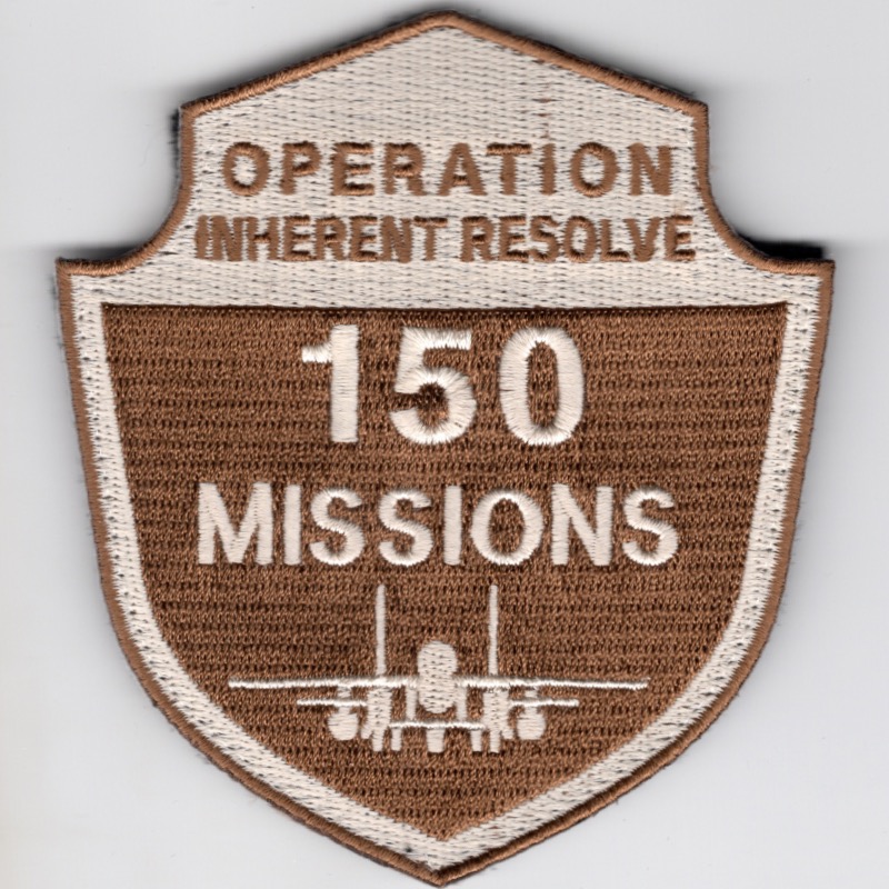 (Another AV8RSTUFF Creation): This is the desert version of the F-15E ‘Operation INHERENT RESOLVE’ shield that is worn by those pilots/WSO’s that flew “150 MISSIONS” in the MudHen in support of operations in that AOR. This patch has velcro attached.