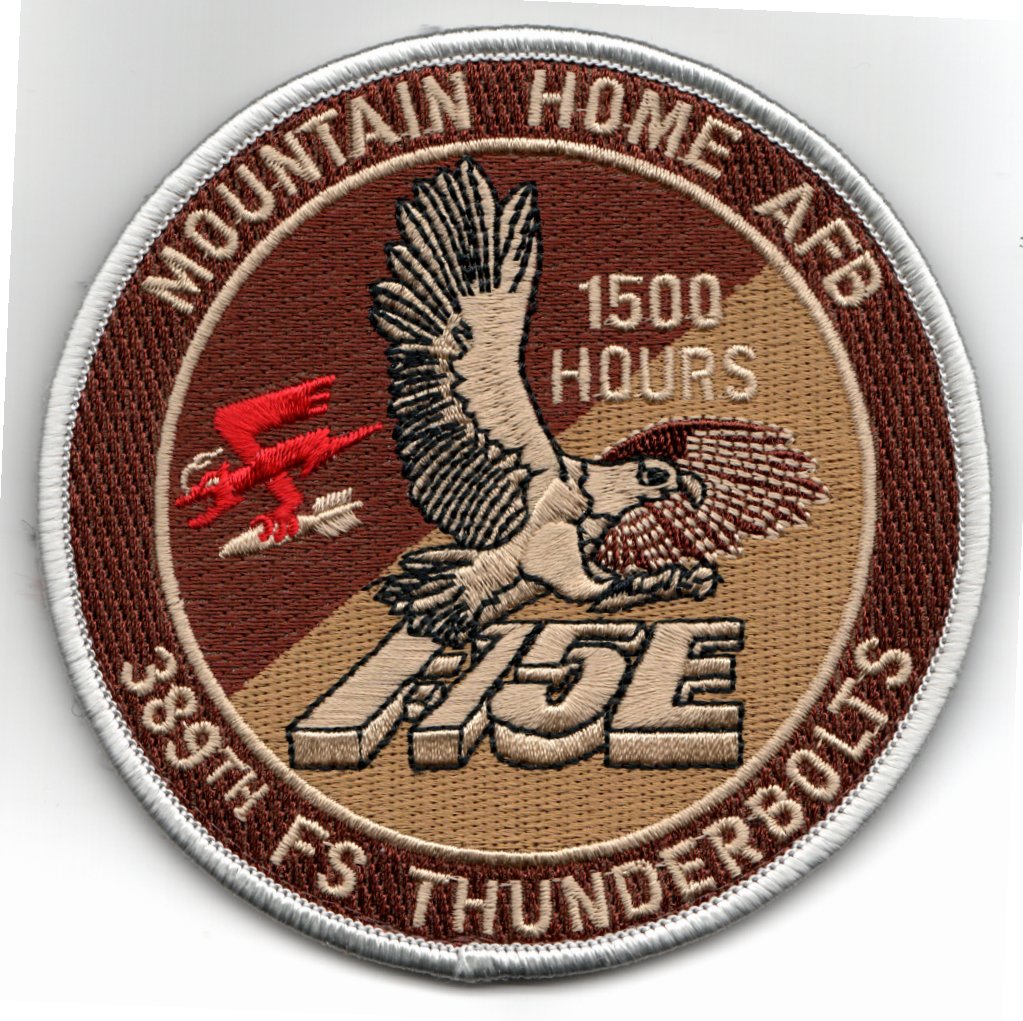 (Another AV8RSTUFF Creation): The 389th Fighter Squadron (389 FS) is part of the 366th Fighter Wing at Mountain Home Air Force Base, Idaho operating F-15E Strike Eagle aircraft conducting close air support (CAS) missions. The 389th flew combat in the European Theater of Operations from, 14 March 1943 Ð 3 May 1945 and in Southeast Asia from, 14 March 1966 Ð 8 October 1971. This is the 4″ desert version of their 1500 HOURS F-15E Aircraft ‘TINSEL’ patch and does come with velcro attached.