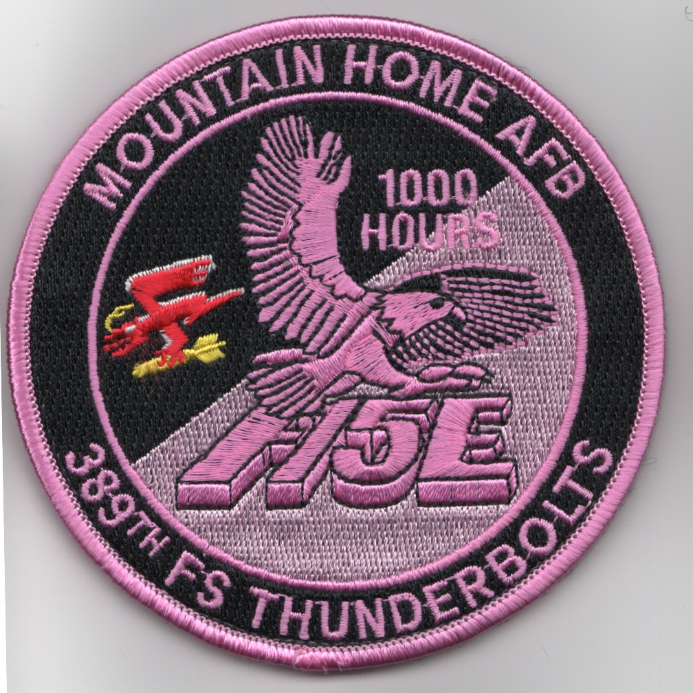 This is the “pink” version of the 389FS’s F-15E Friday “Tinsel” patch with ‘1000 HOURS’ for one of the F-15E Strike Eagle squadrons located at Mountain Home AFB, ID. This is worn on the left sleeve of the flight suit by the females with ‘1000 Hours’ of flight time and does come with velcro already attached. I only have a few sets of these!