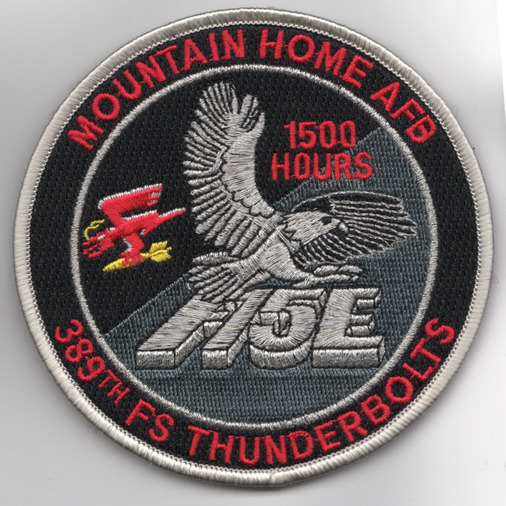This is the “red-lettered” version of the 389FS’s F-15E Friday “Tinsel” patch with ‘1500 HOURS’ (red text) for one of the F-15E Strike Eagle squadrons located at Mountain Home AFB, ID. This is worn on the left sleeve of the flight suit by those with ‘1500 Hours’ of flight time and does come with velcro already attached.