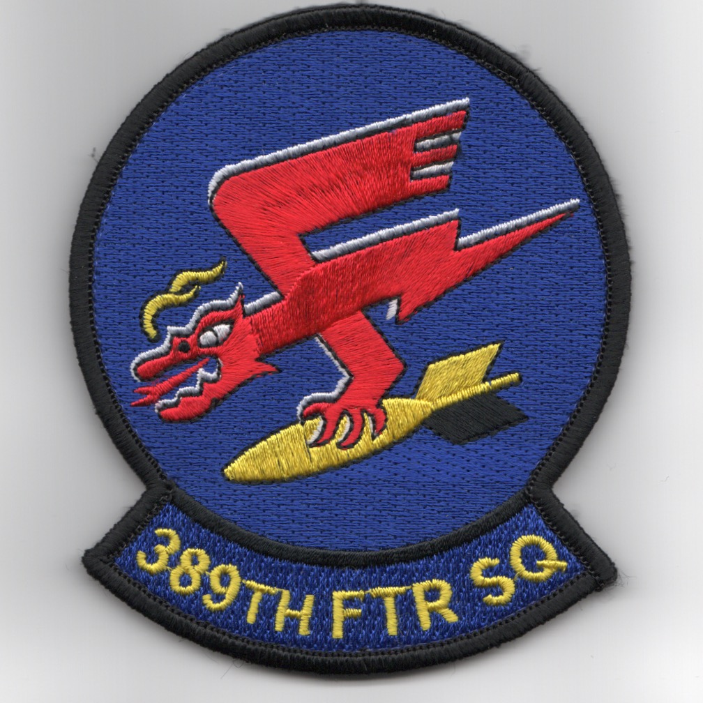 (Another AV8RSTUFF Creation): The 389th Fighter Squadron (389 FS) is part of the 366th Fighter Wing at Mountain Home Air Force Base (MHAFB), Idaho operating F-15E Strike Eagle aircraft conducting close air support (CAS) missions. The 389th flew combat in the European Theater of Operations from, 14 March 1943 Ð 3 May 1945 and in Southeast Asia from, 14 March 1966 Ð 8 October 1971. This is the 4″ blue version of their squadron patch and does come with velcro attached.