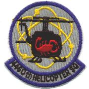 This is the small squadron patch for the 4460th Helicopter squadron that performed range support for the Nellis gunnery range as well as support for the Mercury test site. It was located in Indian Springs, NV. The squadron was de-activated in ’88.
