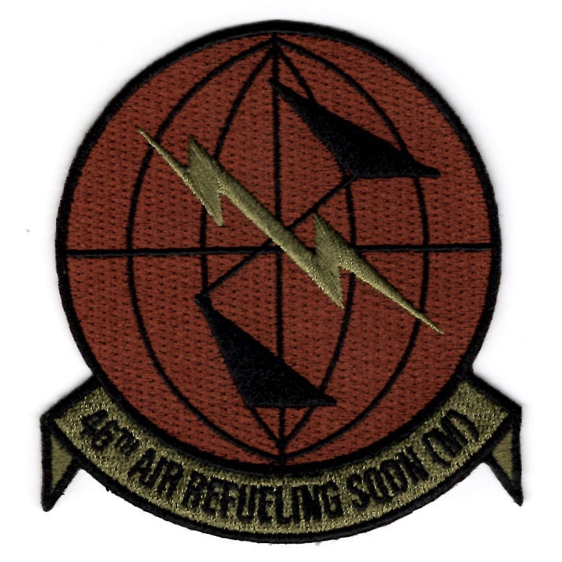(Another AV8RSTUFF Creation): The 46th Air Refueling Squadron (MED) is an inactive US Air Force unit. It was last assigned to the 410th Operations Group, stationed at K. I. Sawyer AFB, Michigan. It was inactivated on 8 October 1993. This is the OCP version of the “MEDIUM’ squadron patch and does not have velcro attached.