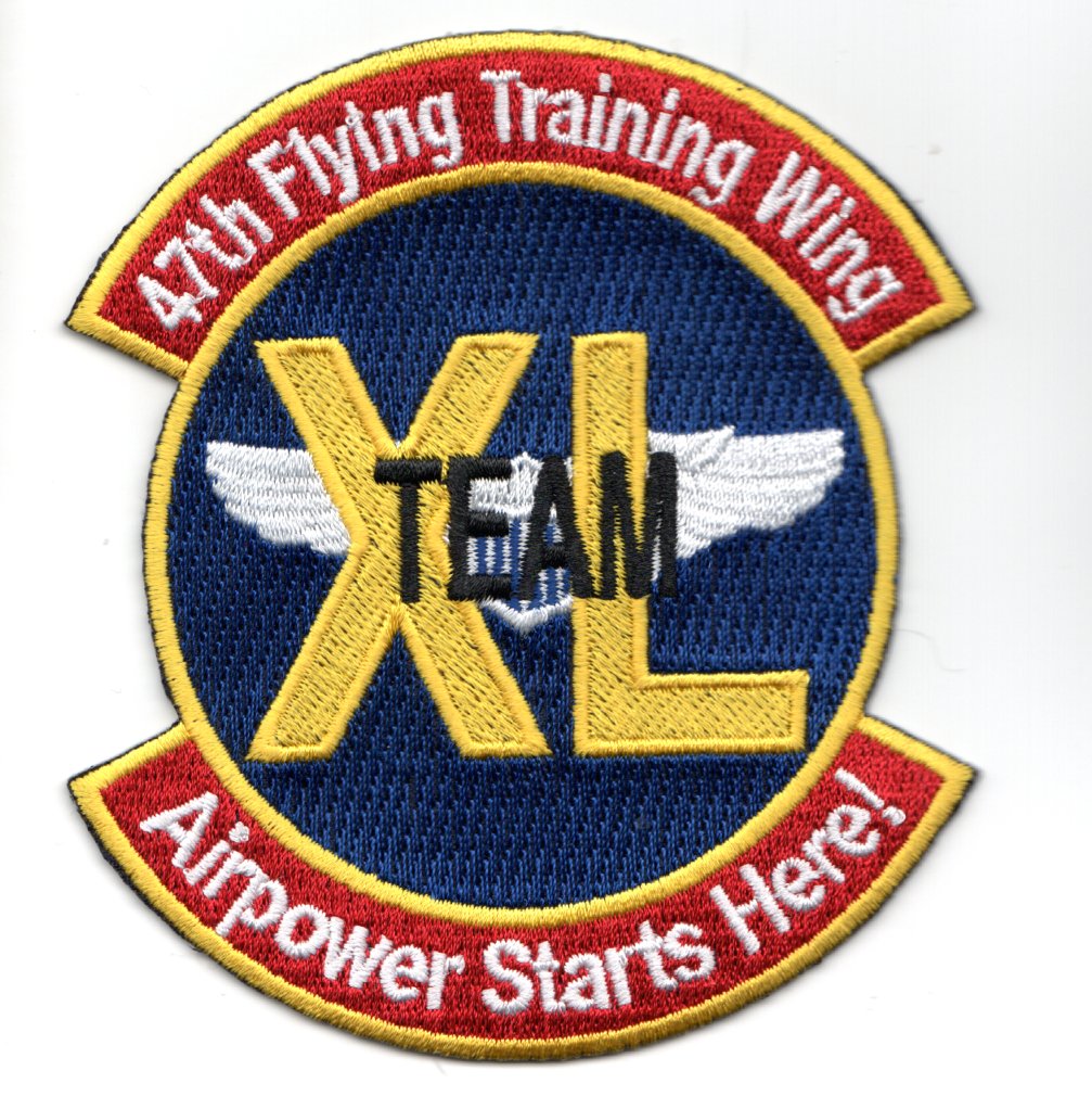 The 47th Flying Training Wing (FTW) is a USAF pilot training wing based at Laughlin AFB, near Del Rio, TX. It is one of five pilot training units in the Air Force’s Air Education and Training Command (AETC) which conducts joint specialized undergraduate pilot training for the USAF, Air Force Reserve, ANG units and allied nation air forces utilizing the T-38C, T-6A and T-1A aircraft. This is the ‘TEAM XL’ patch that says ‘Airpower Starts Here’ (bottom) and does not come with velcro attached.