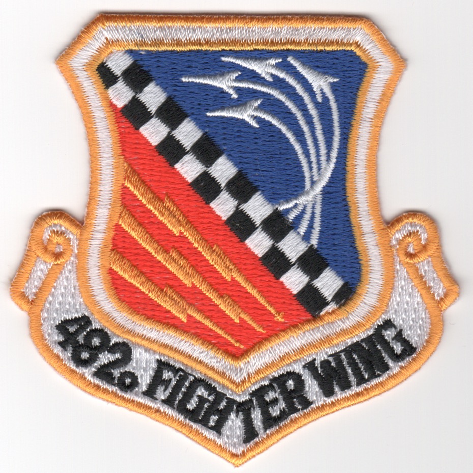 This is the color version of the current wing crest patch for the 482nd Fighter Wing that flies the F-16 Viper out of Homestead AFB, FL and DOES have velcro attached.