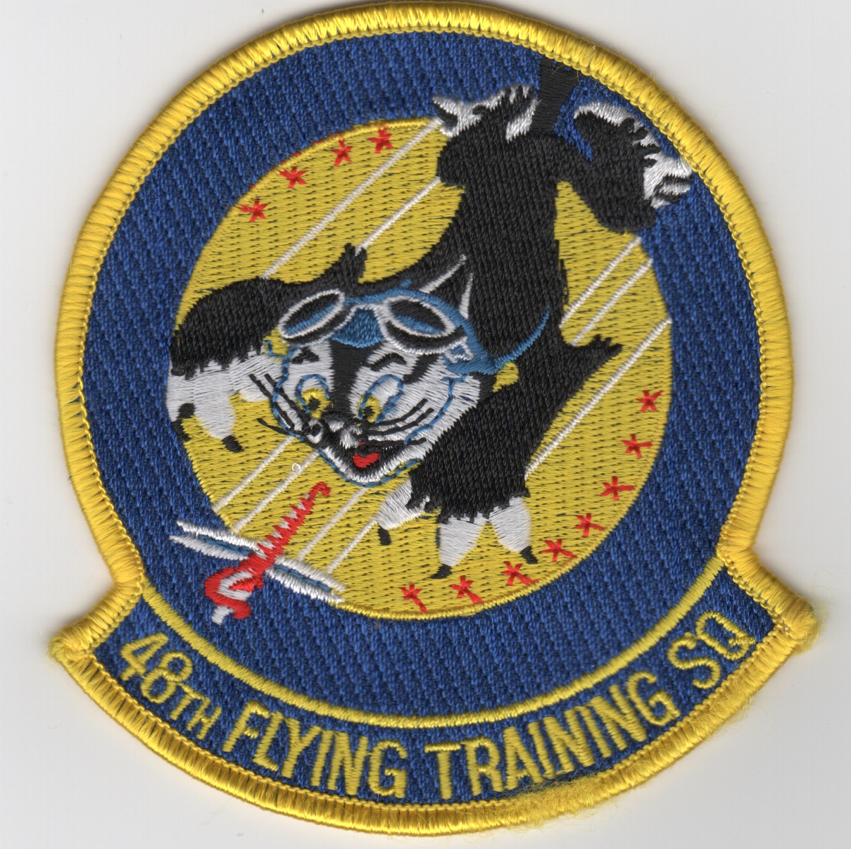 This is the squadron patch for the 48th Flying Training Squadron (FTS). The 48th Flying Training Squadron (48 FTS) is part of the 14th Flying Training Wing based at Columbus Air Force Base, Mississippi. It operates T-1 Jayhawk aircraft conducting flight training. The squadron is one of the oldest in the Air Force, being formed during World War I as the 48th Aero Squadron on 4 August 1917. Currently the squadron specializes in the tanker and airlift track of specialized undergraduate pilot training. Students receive at least 159 hours of flight instruction in the T-1 Jayhawk where they learn air refueling procedures, tactical navigation, airdrop, and advanced navigation. Upon completion of this phase, students earn the aeronautical rating of pilot and receive their Air Force wings