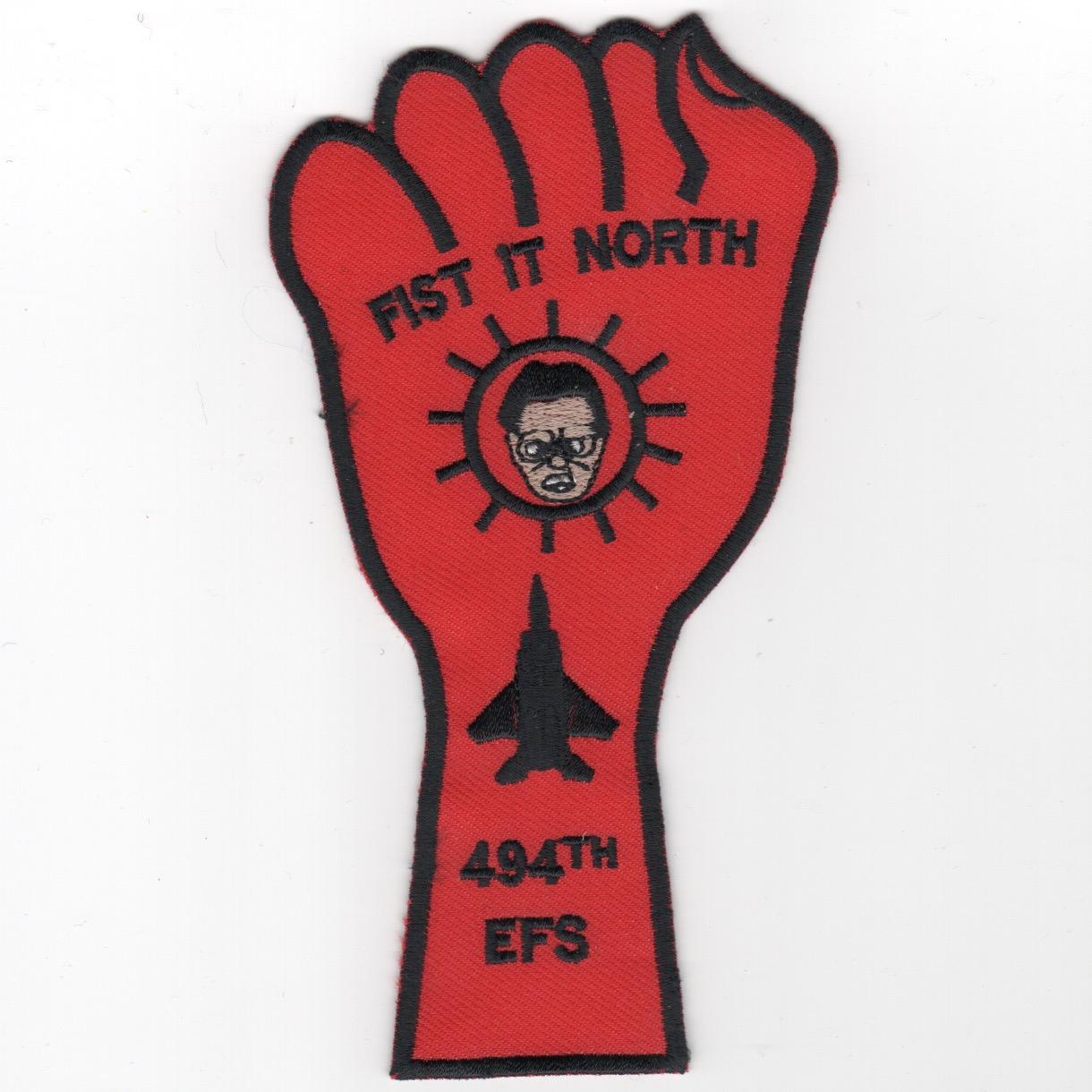 For the 494FS history, note above. This patch was created for the Panthers for their 494EFS (‘E’ stands for ‘EXPEDITIONARY’) deployment where they pressed ‘NORTH’ into theater from their deployed location (unwilling to say location). I found this patch in a Korean embroidery shop and it has the “theater-made” feel with the ‘cut’ edge. It does not have velcro attached.