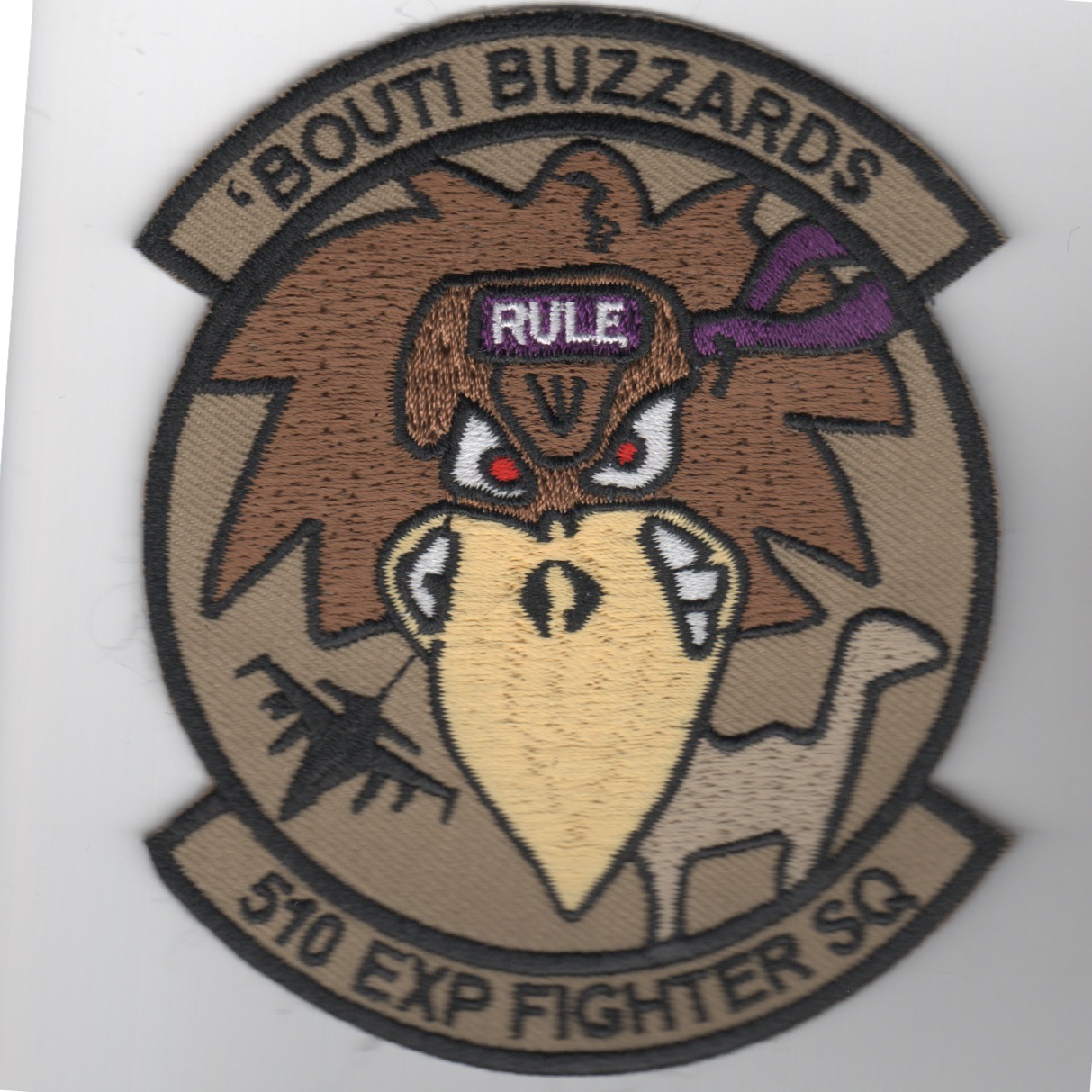 This is the ‘Bouti Buzzard patch created for the 510th Expeditionary Fighter Squadron’s participation in the exercise recently. They fly the F-16 Viper out of Aviano Air Base, Italy and shows the buzzard with “RULE” across his forehead. This patch does not come with velcro attached.
