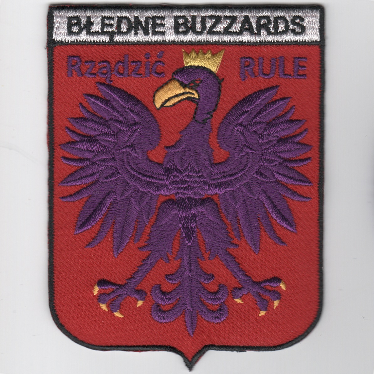 This is the deployment patch created for the 510FS when they participated in and exercise in Czechoslavkia. It says “Rzadzic RULE” at the top, along with ‘BLEDNE BUZZARDS’ and does not come with velcro.