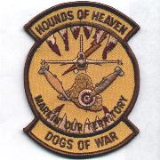 This is the desert-bordered version of the patch created for the 524th Fighter Squadron out of Cannon AFB for their efforts in the “”””Desert””””. It says “”””Hounds of Heaven”””” across the top and “”””Dogs of War”””” along the bottom. This patch does not come with velcro attached.