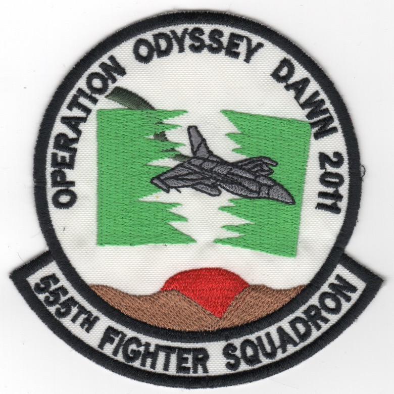 For the 555FS history, note above. This patch was created for the squadron for their participation in the 2011 Operation ODYSSEY DAWN ‘conflict’ we had with Libya. This patch was found in a Korean embroidery shop, has the “theater-made” feel with the ‘cut’ edge, and does not have velcro attached.
