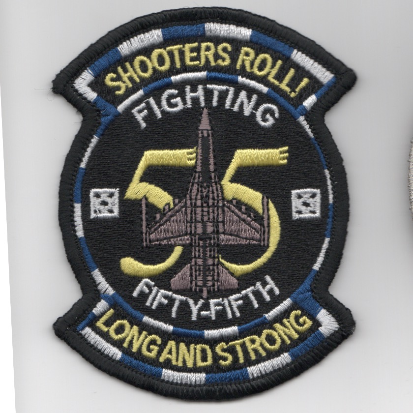 The 55th Fighter Squadron (55 FS) is part of the 20th Fighter Wing at Shaw Air Force Base, South Carolina and operates the F-16 Fighting Falcon aircraft conducting air superiority missions. This patch says “SHOOTERS ROLL” (across the top) and “LONG AND STRONG” (along the bottom) and does come with velcro.