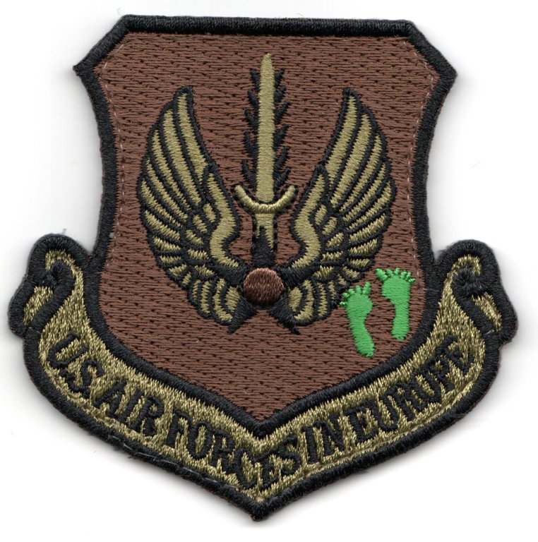 The 56th Rescue Squadron is part of the 31st Fighter Wing, Aviano Air Base, Italy. The squadron was previously assigned to the 48th Fighter Wing at RAF Lakenheath, England. It operates HH-60G Pave Hawk helicopters conducting search and rescue missions. This is the OCP version of their deployed USAFE DET crest patch that says “US AIR FORCES IN EUROPE”, has the ‘footprints’ on it, and does NOT come with velcro attached.