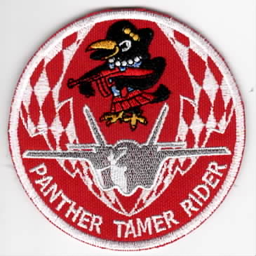 The 60th Fighter Squadron (60FS) is a USAF unit that is part of the 33d Fighter Wing at Eglin AFB, FL tasked with training pilots on the Lockheed Martin F-35A Lightning II. The 60FS flew the F-15 Eagle and supported the various combatant commanders by providing air superiority on call. In September 1990, members, both maintainers and pilots, of the 60FS were deployed in support of Operation Desert Storm as augmentees to its sister squadron the 58FS. This led to the most aerial victories by any single unit since Vietnam. The squadron also participated in Operation Noble Eagle following 9/11. It flew its last F-15 mission on 5 December 2008. The squadron was inactivated on 1 January 2009. The squadron was reactivated on 20 August 2021 as the second formal training unit (FTU) of the 33d Operations Group, 33d Fighter Wing. The 33d is assigned to the Nineteenth Air Force of AETC. This is the red version of the “PANTHER TAMER RIDER” bullet, found in limited quantities in a small, Korean embroidery shop, and does not come with velcro attached.