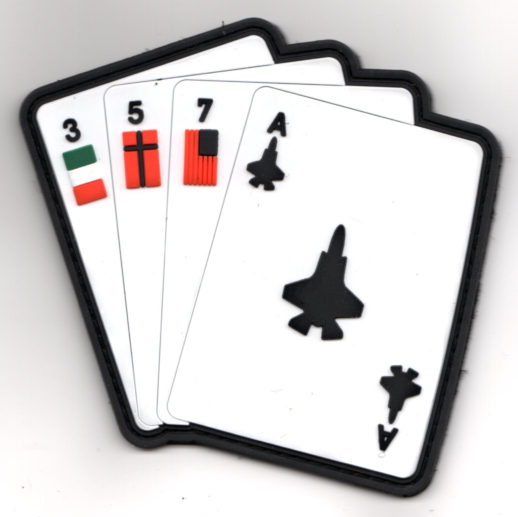 (From Squadron): The 62d Fighter Squadron is part of the USAF 56th Operations Group at Luke AFB, AZ. It operates the Lockheed Martin F-35A Lightning II aircraft conducting advanced fighter training. This is the white, PVC version of their 3-5-7-A patch and DOES come with velcro attached.