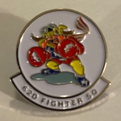 (From Squadron): The 62d Fighter Squadron is part of the USAF 56th Operations Group at Luke AFB, AZ. It operates the Lockheed Martin F-35A Lightning II aircraft conducting advanced fighter training. This is the zap/sticker they put on their binders/cars, etc. They “ramped up” their inventory for the upcoming air show season, but with the “Virus”, all airshows were put on hold, so we’re helping them out by paying a little more than normal to help their SNACK-O FUND stay solvent. This is the ‘white-enameled’ version of their squadron lapel pin.