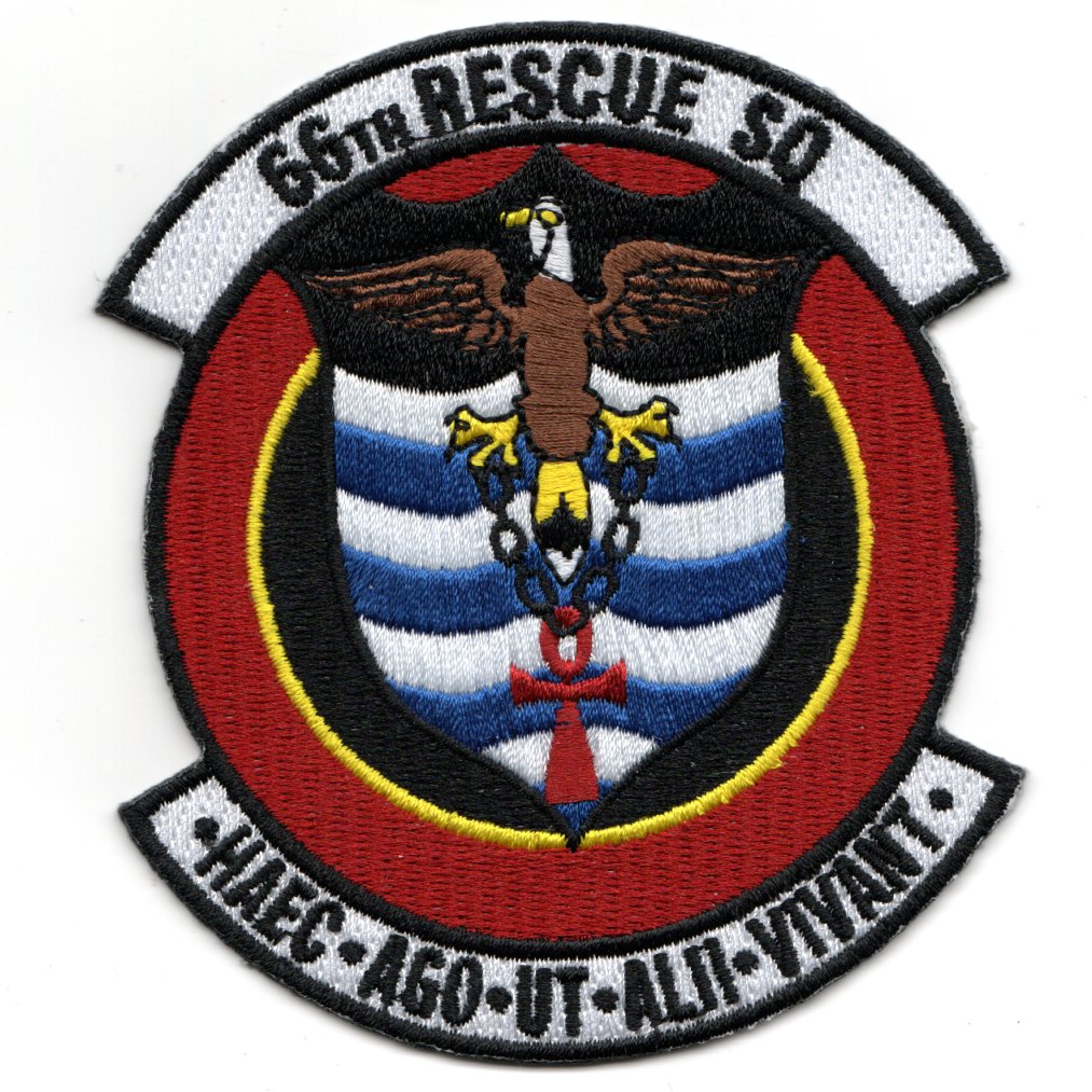 The 66th Rescue Squadron is stationed at Nellis AFB, NV where it operates HH-60 Pave Hawk aircraft conducting search and rescue and combat search and rescue missions. It is a geographically separated unit of the 563rd Rescue Group at Davis-Monthan AFB, AZ, which is part of the 23d Wing at Moody Air Force Base, GA. This is the ‘Eagle on the Blue/White Shield’ version of their squadron patch and does NOT come with velcro attached.