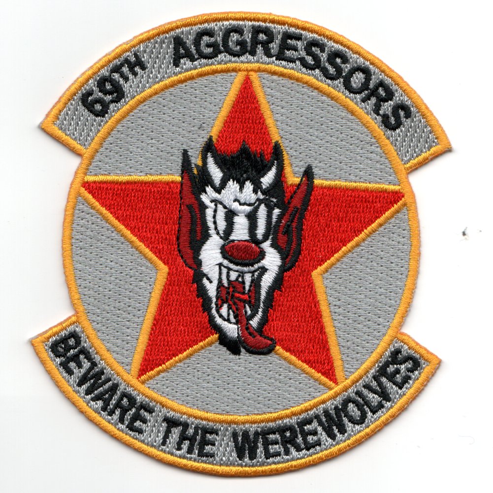 This is the large version of the squadron patch for the 69th Aggressor Squadron, which is a USAF Reserve fighter squadron assigned to the 944th Operations Group, stationed at Luke AFB, AZ. The 69th Fighter Squadron replaced the 301st Fighter Squadron in 2010 and currently trains Air Force Reserve Command pilots combat tactics with the F-16 Fighting Falcon. It is integrated with the 56th Operations Group and flies Block 42 F-16Cs, tail code “LF”, adorned with a black tail band. This patch does not have velcro attached.