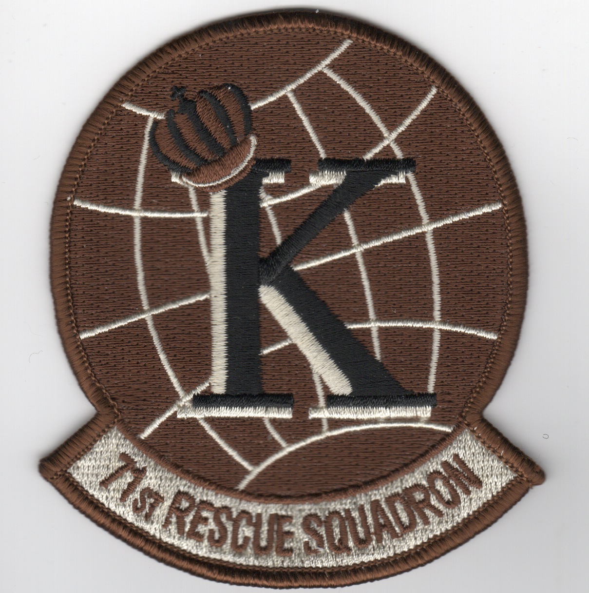 This is the desert version of the 71st Rescue Squadron patch. They fly the HC-130 out of Moody AFB, GA. This patch does NOT come with velcro attached.