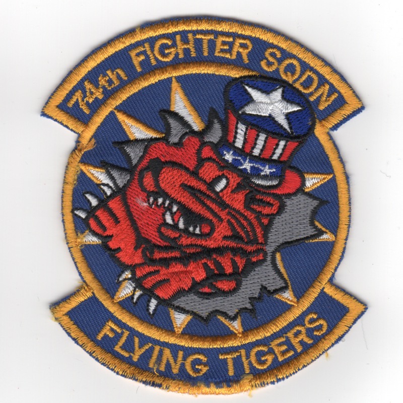 (Korean): The 74FS is a USAF unit assigned to the 23d Fighter Group and stationed at Moody Air Force Base, GA. During World War II, the 74FS was one of the three original squadrons (74th, 75th, 76th) of the 23d Fighter Group. On 17 December 1941, the AVG 1st Fighter Squadron was redesignated as the 23d Pursuit Group 74th Pursuit Squadron and subsequently the 74th Fighter Squadron. This patch has the “orange” background behind the tiger. It was found in a Korean embroidery shop in very limited quantities and does not come with velcro attached.