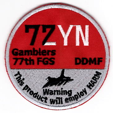 (Korean Supplier): The 77th Fighter Squadron is part of the 20th Fighter Wing at Shaw SFB, SC. They operate the General Dynamics F-16 Fighting Falcon aircraft conducting air superiority missions. The squadron is one of the oldest in the US Air Force, its origins dating to 20 February 1918, being organized at Rich Field, Waco, TX, as a pilot training Squadron during World War I. The squadron saw combat during World War II, and became part of the US Air Forces in Europe (USAFE) during the Cold War. This patch says *ZYN* (a play on the smokeless tobacco product) and says “WARNING: This product will employ HARM” and DOES NOT come with velcro attached.