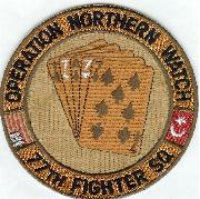 This is the desert version of the Operation Northern Watch patch for the 77th Fighter Squadron stationed at Shaw AFB, SC. This patch DOES NOT come with velcro attached.