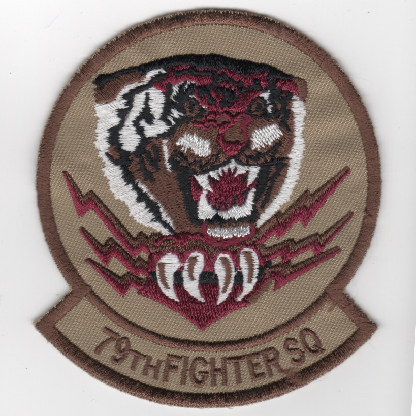 The 79FS is part of the 20FW at Shaw Air Force Base, SC. It operates the General Dynamics F-16 Fighting Falcon aircraft conducting air superiority missions. The squadron is one of the oldest in the United States Air Force, with its origins dating to 22 February 1918. It was organized at Rich Field, Waco, TX, as a pilot training Squadron during World War I with the squadron seeing combat during World War II, and became part of the USAF in Europe (USAFE) during the Cold War. This is the desert version of the squadron patch that has the “cut-border” and was found in a Korean embroidery shop in very limited quantities, has the “in-theater-made” feel to it, and does not come with velcro attached.