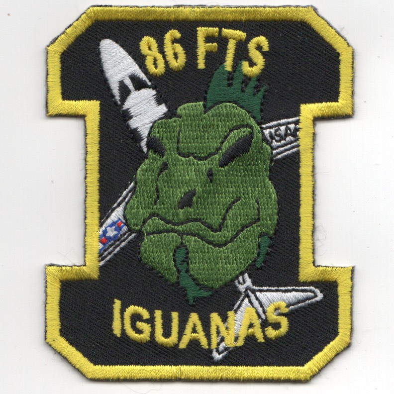 This is the “I – Flight” patch for the 86th Flying Training Squadron (FTS) stationed at Laughlin AFB, TX and shows the “IGUANA” on a black “I”. This patch does not come with velcro attached.