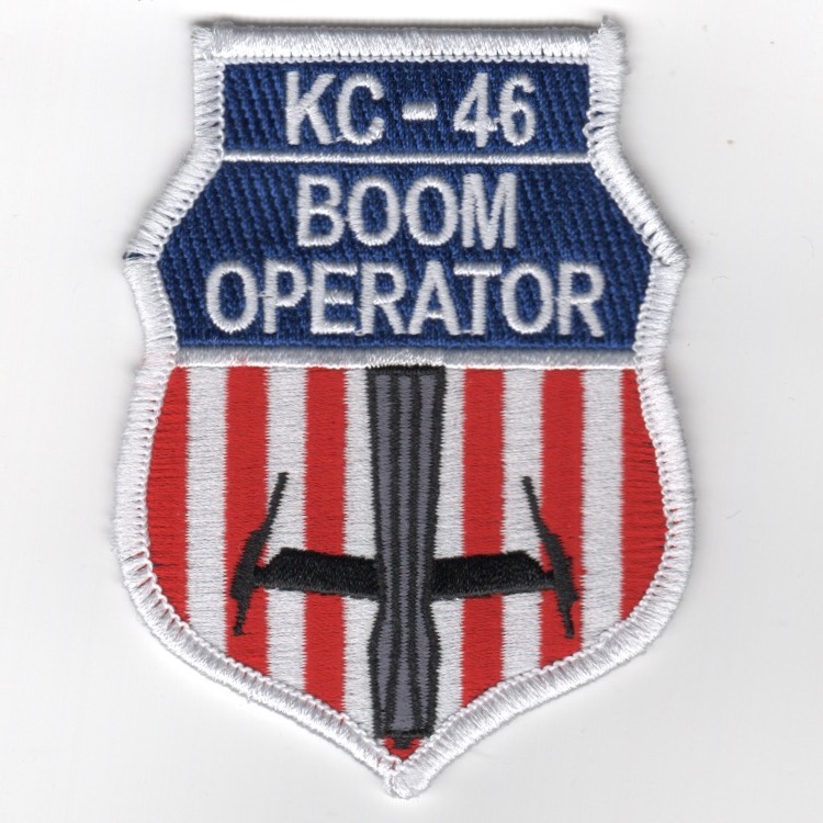 This is the r/w/b version of the KC-46 ‘BOOM OPERATOR’ patch for the 905th Air Refueling squadron. The 905th Air Refueling Squadron is an inactive USAF unit, last active as an element of the 319th ARW at Grand Forks AFB, ND, where it operates Boeing KC-46 Pegasus aircraft. The squadron was inactivated at the end of 2010 when the 319th wing lost its operational mission and became the 319th Air Base Wing, but apparently has been reactivated(?). This patch does not have velcro attached.
