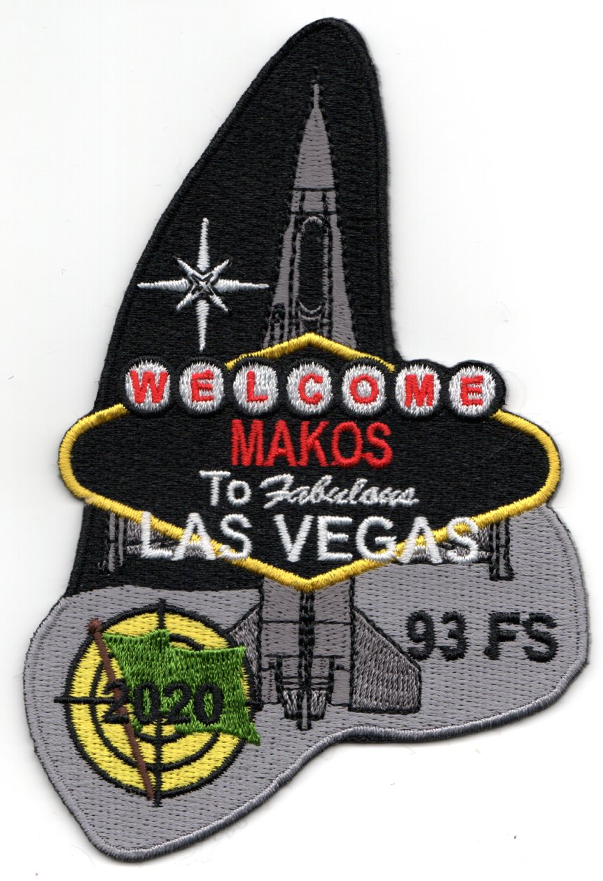 This is the AIRCRAFT patch created for the 93FS for their participation in the 2020 “GREEN FLAG” exercise at Nellis AFB, NV. It has the “WELCOME MAKOS” and a green flag waving on the USAF WIC Bullseye. This patch does not come with velcro attached.