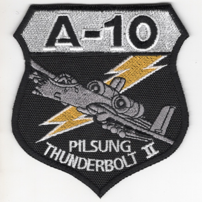 (From the Squadron supplier:) The 25FS is part of the USAF’s 51OG, 51FW, at Osan Air Base, South Korea. They operate the Fairchild Republic A-10 Thunderbolt II aircraft conducting close air support missions. On 28 January 1982, the 25FS received its first Fairchild Republic A-10 Thunderbolt II aircraft. The squadron’s presence helped maintain a peaceful armistice between North and South Korea until 2 October 1989. It was during that time that the 25th began transferring aircraft to the 19th Tactical Air Support Squadron and other stateside units. The 25th was then inactivated on 1 July 1990. On 1 October 1993, the 25FS was reactivated under the 51st Wing at Osan Air Base, Republic of Korea, and has since added six A-10 aircraft to its fleet, making it a dual qualified A/OA-10 squadron. This is the black version of the ‘PILSUNG THUNDERBOLT II’ shield with the A-10 frontal and does not come with velcro attached.