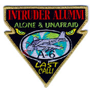 This patch was created when the last Intruder squadron (VA-75) decommissioned, to commemorate those who had served in that community. This is the “gold-bordered” version of the Intruder Alumni patch, and does not come with velcro.