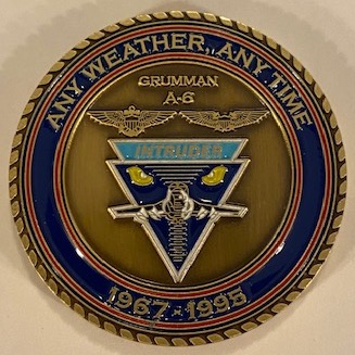 Another AV8RSTUFF creation: This is the A-6E Intruder / VA-52 KNIGHT RIDERS Intruder ‘Challenge Coin’ with the Squadron logo on the front (seen here) and the A-6E Intruder info/logo on the back (below).