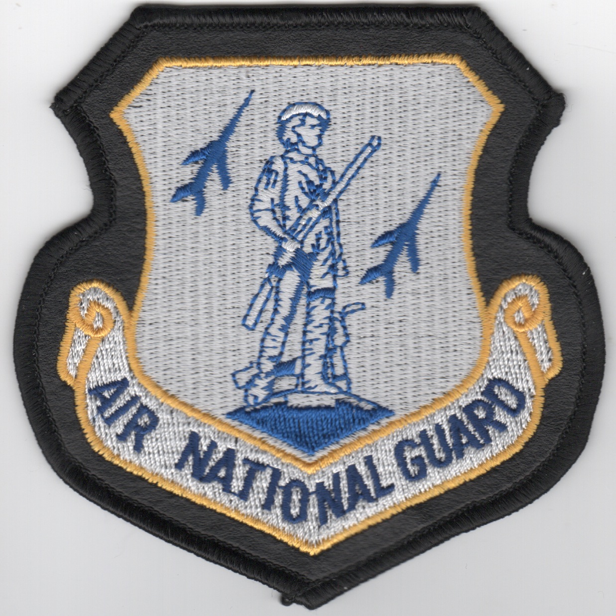 This is the larger, white, leather-bordered version of the Air National Guard Crest patch. It does not come with velcro already attached.