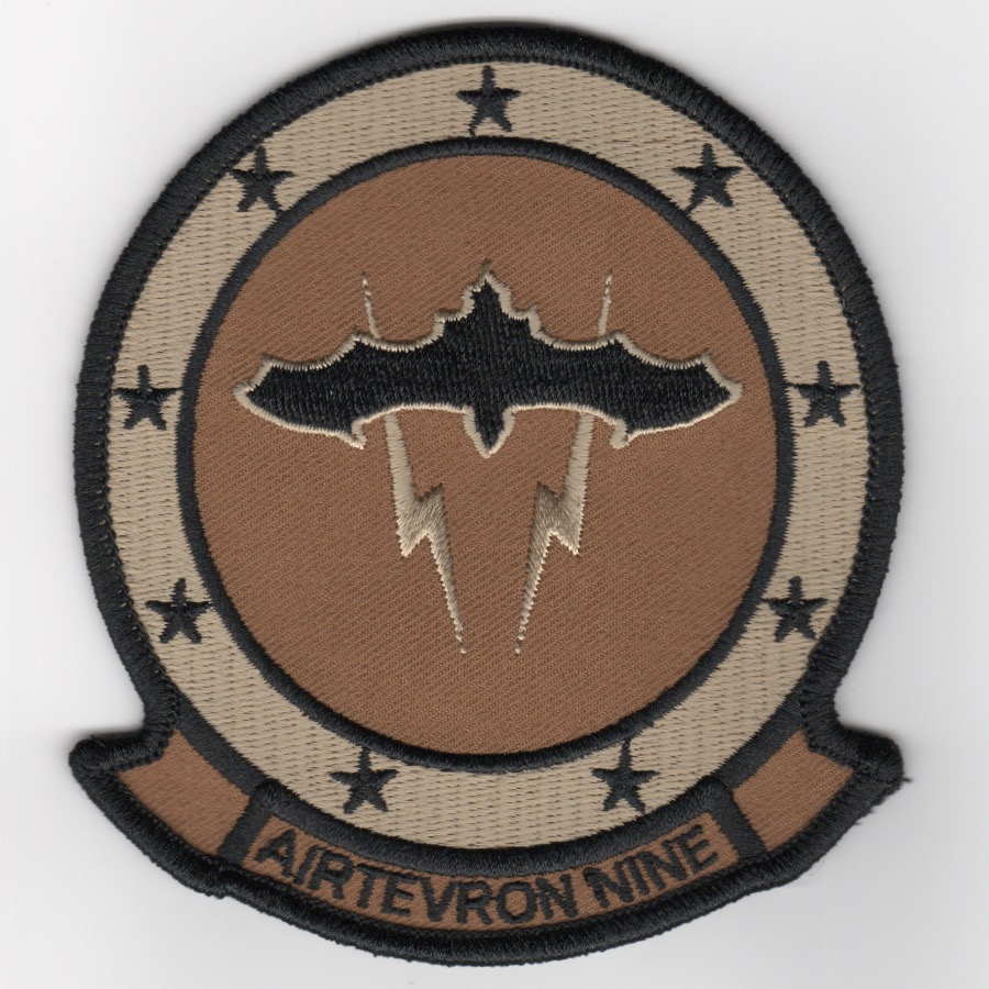 AIRTEVRON-9 is the Air Test and Evaluation Squadron Nine, (AIRTEVRON NINE, commonly referred to by its nickname, The Vampires) is a United States Navy air test and evaluation squadron based at Naval Air Weapons Station China Lake, California. Using the tail code XE, the squadron operates numerous aircraft and helicopters of the United States Navy and United States Marine Corps. This is the desert version of their squadron patch and does not come with velcro already attached.