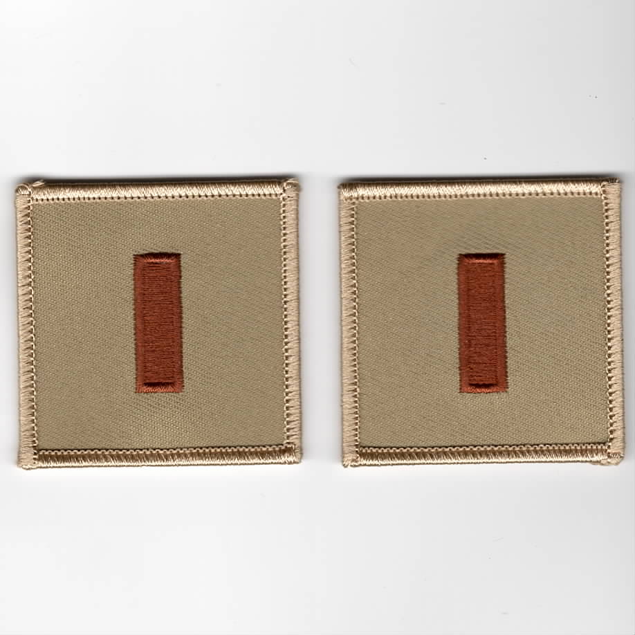 This is the O-1 rank worn on the shoulders of the desert FLIGHT SUITS for all the American military aviators when operating in theater and does NOT comes with velcro attached. There are two pieces included.