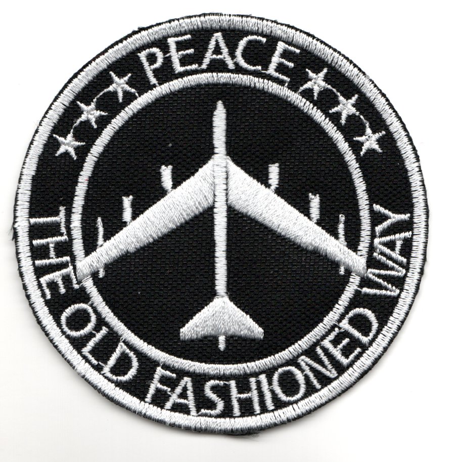 This is the black version of the B-52 BULLET patch that says “”””PEACE – THE OLD FASHIONED WAY””””. Found it in a small Korean shop and does not come with velcro attached.