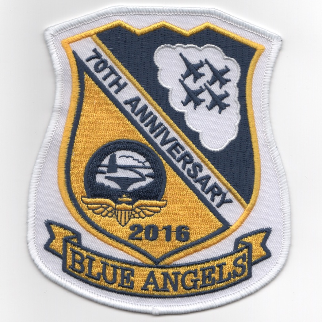 This is the 70th Anniversary patch for the US Navy’s elite demonstration team, the Blue Angels. Based out of NAS Pensacola, FL, the Blue Angels are the premiere Demonstration Team in existence today (althought they are all pretty damn good!). This patch commemorates 70 years of exhibitions performed by the elite Naval Aviators and has the F-18 Hornet planform in the upper right corner with the year 2016. This patch does not have velcro attached.