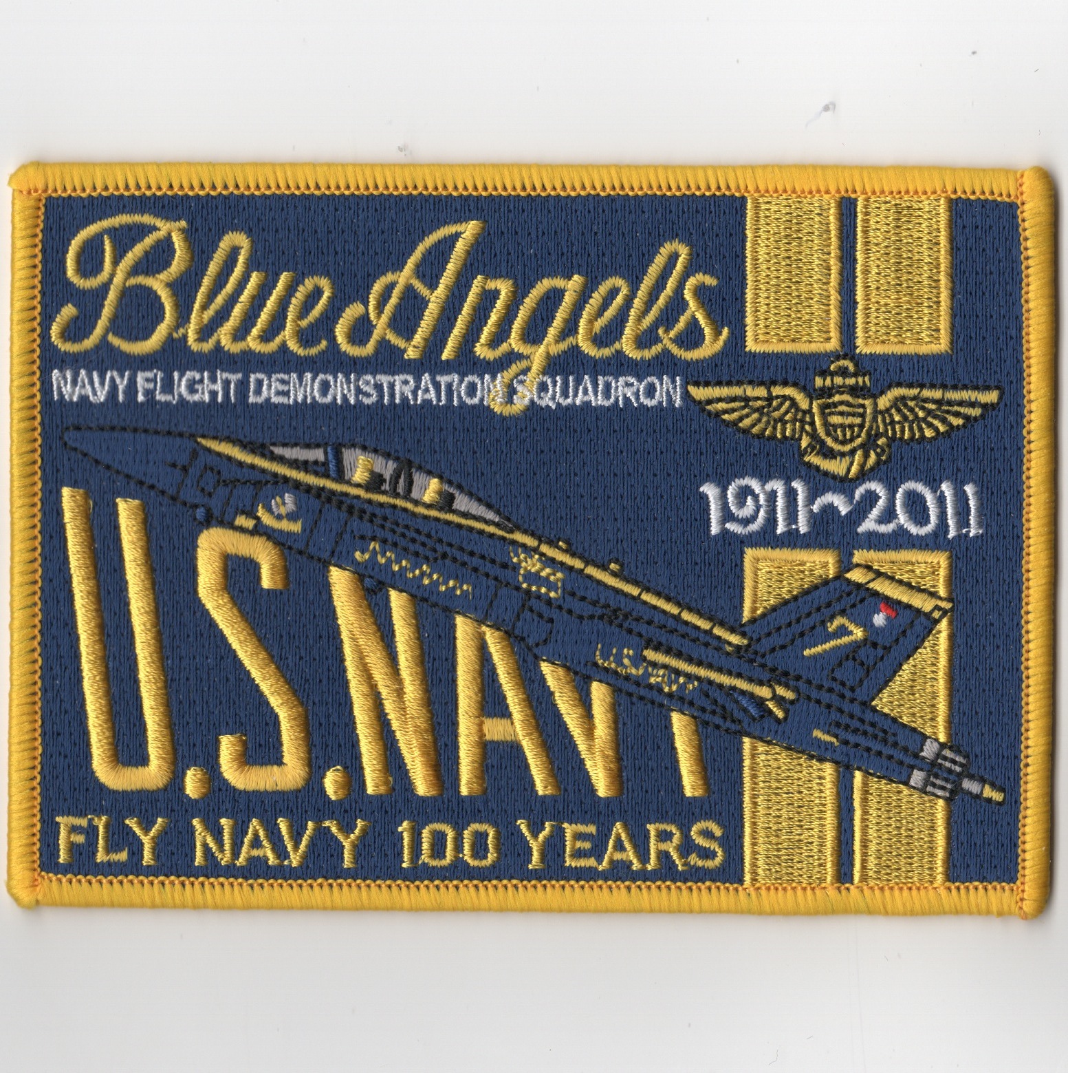 This is the Blue Angels A/C No. 7 patch commemorating 100 years of US Naval Aviation from 1911-2011.