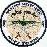 This is the “”””Operation Desert Shield / Persian Excursion”””” patch created for the C-130 Hercules and shows their involvement from 1990-1991.