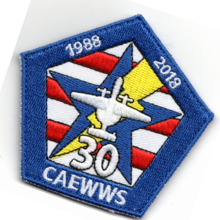 (Direct from the squadron): This is the 30th Anniversary patch created for the Carrier Airborne Early Warning (AEW) Weapons School. It is in the shape of the US PENTAGON and is earned by those from the E-2 Community that graduate from this very prestigious school. It says “”””1988 – 2018″””” (top) and “”””CAEWWS”””” (bottom) and DOES have velcro attached.