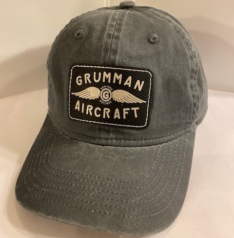 (Direct from supplier): This is the dark blue version of the GRUMMAN AIRCRAFT patch we obtained from the Grumman Factory Supplier. It has the GRUMMAN logo emblazoned on a leather patch, then the patch is sewn onto the front of the cap. There is a cloth strap on the back for adjusting.