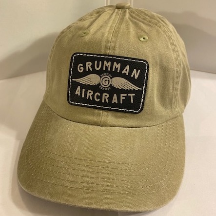 (Direct from supplier): This is the khaki version of the GRUMMAN AIRCRAFT patch we obtained from the Grumman Factory Supplier. It has the GRUMMAN logo emblazoned on a leather patch, then the patch is sewn onto the front of the cap. There is a cloth strap on the back for adjusting.