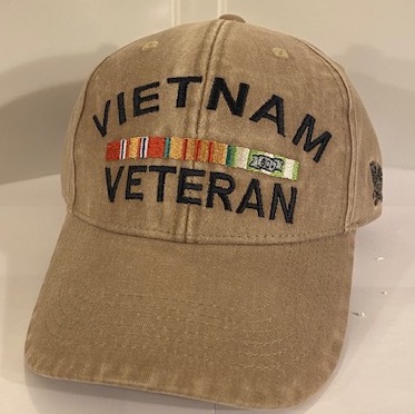This is the khaki ballcap that says *VIETNAM VETERAN* and has the campaign ribbons.