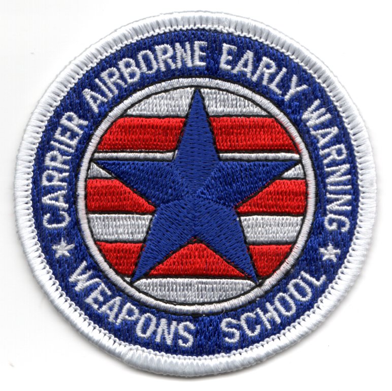 (Direct from the squadron): This is one of the versions created for the Carrier Airborne Early Warning (AEW) Weapons School. It depicts a blue star (centered) and is earned by those from the E-2 Community that graduate from this very prestigious school. It says “”””CARRIER AIRBORNE EARLY WARNING”””” (top) and “”””WEAPONS SCHOOL”””” (bottom) and does not have velcro attached.