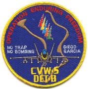 This is the Airwing 5 Det B patch created for Operation Enduring Freedom. It shows the F/A-18 Hornet returning to Diego Garcia from a bombing mission over Afghanistan. Quite a unique patch!