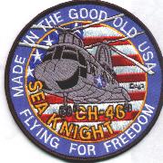 This is the “”””Made in the Good Old USA”””” helo patch for the CH-46 Sea Knight. It also says “”””Flying for Freedom”””” on the bottom.