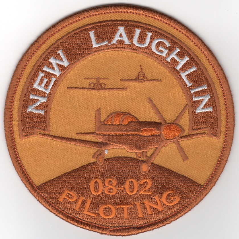 This is the class patch for UPT class 08-02 out of Laughlin AFB, Texas. It says ‘NEW LAUGHLIN’ across the top and ’08-02 PILOTING’ along the bottom. This patch does not come with velcro attached.