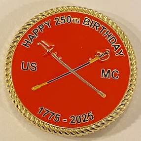 This is the back of the red-enameled version of the USMC coin created to celebrate their 250th Birthday (1775-2025).